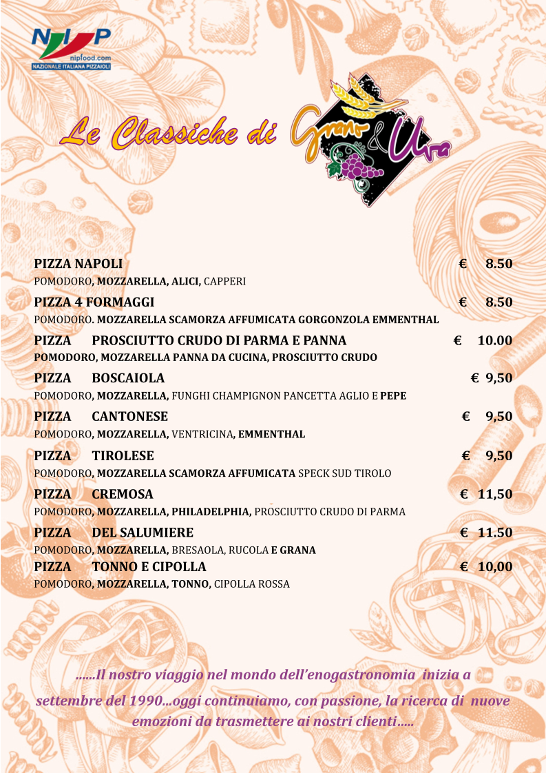 Whether you're indulging in a classic Margherita or an innovative creation, expect nothing less than culinary excellence. Every dish tells a story, making Grano&Uva a must-visit destination for pizza aficionados seeking a genuine Italian experience.